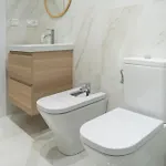 En spiseplads og klimaanlæg er blandt bekvemmelighederne på værelset. Denne ferielejlighed har også et bidet, separat toilet og en bruser på badeværelset.